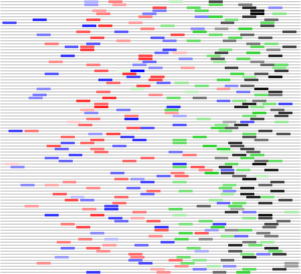 Different colors represent different profiles. Darker colors represent stronger matches to profile. G6834971@J907359_RC@j_at.-.chr1:24259490-24259640 ttatttttgatacagtgttttgctttgttaacattcttttagctacttttatcagaaatgcatgagtgtttgtttcttttctgatgtctctgggttttgatgactgccttctcttctttttcccttttccctttgcatctgcacatctag G6850160@J907675_RC@j_at.-.chr1:52778643-52778793 ccagaaagtggataatagtgatacaaataccacatacatgaccaagtattgggtagaaacttttatattcaggaataaaacttatagttggaataagcatatacaatatctgcgctatatatttacaaactcttatttttttaaaaacag G6817930@J907925_RC@j_at.-.chr1:72293170-72293320 cagataatttgggatacattgcatataccatcattgcttgagcattccgtcaatttcactaccggtcacctgatgtacactgctttattttttcctttgttttttgcctctacttttcttttgcctcctctttgcttcgtaactcaatag G6865744@J908096@j_at.+.chr1:83629948-83630098 aaggattttcaaagcatttgagggatattatattgtactaaagcatacaatataatcctatctgacatttatttgtcttgtttttgctttattttcgtatttctctgtttcctgattctgtcttgtgtcttctgcaaaaacctgccctag G6845409@J908514_RC@j_at.-.chr1:120494641-120494791 aatcctagcactcagcaggcagagacctgtggatctttgtgagtttaagaccagttagggctacttagtgagatcctgtctcaaaaaggaaggaaaaaacatcataagacatagcctattgaagatgctttcatattatttctcttccag G6819323@J908687@j_at.+.chr1:137044453-137044603 caggcagtgccaggccctctatcccagggacactactcagccgggtttcttcttttctctccttgttcctccatgtcccttctctcccctcccatctcttcctacctctcttctctgcctctacctcccacccccccccccctcaaatag G6820698@J908972@j_at.+.chr1:165102109-165102259 atcaaaagttctctttcatgctaacgtcccctaatgaatgtattacgtgtttgtacttgtattgatgacttatagtttaaaggaagaaaaagacttggttgctctgctctaaccatagtgcgataacgaccatgctttttacttacgcag G6820594@J909190_RC@j_at.-.chr1:169393579-169393729 tcatgctactaaccaggctctgtggatgctgtttttgtcttacatttgatttggggggttgctttgcatgtcgttctcctcttggctgttggttgcagggttgatccttttcctttctgtgattcaggtgcctcactctttcctttccag G6813886@J909757@j_at.+.chr10:17982545-17982695 tatgaagtgattatgggaattacaaactacagaattttgtcgatcctgcgaaatgcatcttgcagtgcagcctctgaatgacttgctaagtcttctccagtgcatctactgcatctcccgtgctgacgtgtctctcctctgtctgtccag G6829755@J909798@j_at.+.chr10:20217337-20217487 cagacagacacacacacacacacacacacacacacacacacacacacacaccacatacactttgcttttgttactgcagtaaaatctagaatttgcatgtaactaaatacctttgattgcattactaaaaactgtgttaatgttaatcag G6836374@J910003@j_at.+.chr10:42610602-42610752 agtcaaggcttagcctgggcattgtgcttaataatgttacagtgtttgtatggtaaccatgtttgtcaccttatcagtgtgccagacatttccctccctttctgaatgtcttaatgttcttcaacttaggagtgactgttttgctttcag G6868962@J910360@j_at.+.chr10:70033515-70033665 ctgtttttattggcttctcttgctttgctttgctctctaaatcagcttgccttgtgtgctcctactcagtccttctcatatcctgacactgttttccctgctgtccattataatattccttgtctctgcaatgcatcttgggaccaaaag G6860927@J912087@j_at.+.chr11:29704716-29704866 gttactatttcctacttcctttctgccttactagccatttctcttaaaatgtggttagctcattgtgaacttccccttgcttagtctcttgctttcactcctccagcctgcttgtatttctgctgaggttgtattctgtttgtttttcag G6891129@J912265@j_at.+.chr11:49591379-49591529 ttctacggtcctgacttatcttccttttcagtttttcctgctctctcctgattatgtgtaacttttcaaagaaaaaattaacatctttgttgttctaacttttttctgtcatgtttttcagagacttcttttttcttgtttttctatgag G6899511@J912281@j_at.+.chr11:50554203-50554353 gggaggactctcactgtaatagaaagtgtaaacaggagaggctcatccttgccttgggaggagggggtcacttgaatagagagagagcactggggacccagccctctgcttgagtctgagctctgatttcatccactctcactgaactag G6903939@J912580_RC@j_at.-.chr11:55237415-55237565 acatgcattaaaaagtaggttgtttgtttaaccatggtgctaagtgtgctctagcatttgggttcagttttcatttgtatcagttaattacatagaggggagaattgctccctgcagctttggctcctaactgcatgcttttgttttcag G6909490@J912863_RC@j_at.-.chr11:66344170-66344320 ccctatgctctccttgtcagtgtggtggggagagtgatttgaactgttcttgcattagttttattcatagtgtaatataacgatgcaatgtcatgttctgatttgtttgacttacagcaaatgaactgcaacttatctcttttactttag G6937358@J912962@j_at.+.chr11:71196576-71196726 agtgatctggggcaggctgtggagccttcactaatgagcgtgggctaggggagctgcagaccttacatagcatagctcatgttcctaacctttctcaccatctctcctgcttcctcctggccgcctttcttcctctgtggcccctcccag G6926528@J913333@j_at.+.chr11:78135993-78136143 aggaactggctggggaggcagatttccttgcatgctgtgtgttgagtgtgtggagatgtgtctgagcttgacgtgtgaaggcaagagcggcctgctgctgggtaattgctgctctgtcctattcttccctttgctgccttcctggattag G6928027@J915031_RC@j_at.-.chr11:117189499-117189649 ctgccgtccctgtctggctgctctgctctggggagggtctgcttggcttggggtggcccggccatttctaacctgttttttgcactttgcatctttcccctcctctatttccctcctccctctctgtgtgcactgcctgtcactccgtag G6876366@J915273@j_at.+.chr12:3105957-3106107 atcccccttgagtgctgtgacctcgacgtgacccctgacctaccgctgaccccggtgtgaccccacaaccccaaggtgatccctgacctccccatgaccccagcaacctcgaagtcaccatgtaatcccaccatgaccctgacccaacag G6910999@J915678@j_at.+.chr12:65574335-65574485 taaacttaataaatgttatttttatattttttctttgaccctttaagtgcatcagagatatttccagatgtttttgtggccattgtttctttggcagatatttagaaaaaaggttataagttgagtatgtaattttccatttctttgcag G6875109@J916256_RC@j_at.-.chr12:94625494-94625644 agagggttaggaaaggaatgcagaacgtggatagaagggctggctctctcaggctttgacatctggtttcctttcgtgtagttcttgtgagaagtgtgctgattctgttccctctcttcagttgtccttgtttttgactttgtgctgcag G6909211@J916434@j_at.+.chr12:107324455-107324605 tagaaccttttggtggaatcaggttttaatcctgctcctgcttccctacccagtgaggcctttgtcatgctagttcagagtgctggtgtgaggatgctctctgctggtttgctttaatatgctctagactagaaggctgtttccttccag G6885622@J917196_RC@j_at.-.chr13:55052060-55052210 attctgattaggaaaccagggccatgttgtacaatgtgggggttcaaggatgccttgcaggtcactgtttagttctctgtcctgtgcttcaagtaatacatttggtttgggcaagtcttacttagtaagtttccctatcattttttccag G6946480@J918038_RC@j_at.-.chr14:14227560-14227710 ggagtgcctcttttttactgtgcatacttccgccaggaatagtgtagatgtgtatgagtgggagatgctactgttaaactgcagtgtattgatgaagcaggttgagagtgaagacatttgaacttgattttccttgtcttcattttaaag G6963012@J918087_RC@j_at.-.chr14:15859037-15859187 cctcctcctctccctactctccctcctcctcctctccctcctctccctcgatgcagagcccgagctggtgcactaacctgcggtgtgtctgggcttctcttctcacctcctctctccccttctctttccctcttgctgtggtgtgtccag G6933241@J918246@j_at.+.chr14:26357294-26357444 tggtggctaaagccagggagctctttgggattggatggcattggtagccccctggactgtggctgttcacccttgtttctagttgcttcttagtaatggagctttggtgccagtcaggcccctaaggtatacaatgttgggttgtggcag G6924354@J919294_RC@j_at.-.chr14:94383434-94383584 tactcaggtggcttcagtttcactttagcaaaattgtatttcctattggcgctggaactcaggaaatgtcactgtgaacgcatcttctgcagatgatcctctgttccctttccttgttgatatctttctttcttaaactttgttgctcag G6972175@J919743@j_at.+.chr15:42030844-42030994 tgaactaggaaaagatagcttggttaccattctcttctcc